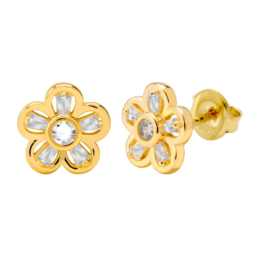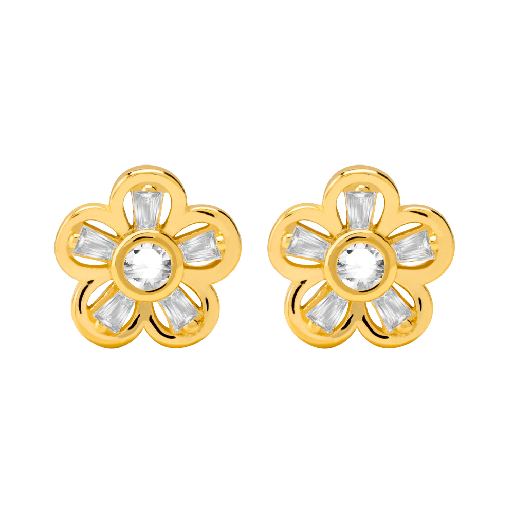 Juvenis Flower Earrings, a symbol of truth, elegance, and guidance. These delicate earrings are dynamic and eye-catching accessories to adorn your ears with beautiful ornaments. The gems in these fabulous earrings are attached with Zircon gems to make their reflections as shiny as the moonlight chains. Juvenis Flower Earrings are gold-plated over silver with a spring-ring buckle.