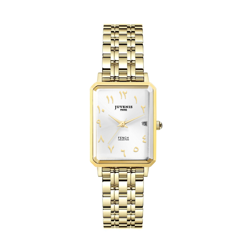 The Juvenis Gold Leaf watch is a symbol of timeless elegance and sophistication. Its gold band and square case exude luxury, while the green dial adds a touch of nature-inspired beauty. Protected by durable mineral glass, this watch is designed to withstand the test of time. With its precise Japanese movement, you can trust this watch to keep accurate time. Elevate your style with the Juvenis Gold Leaf watch, a perfect accessory for any occasion.