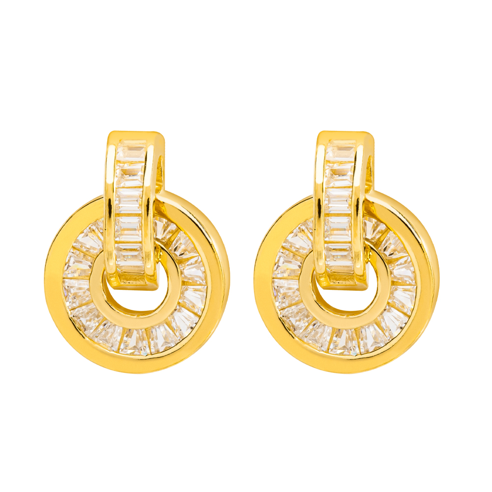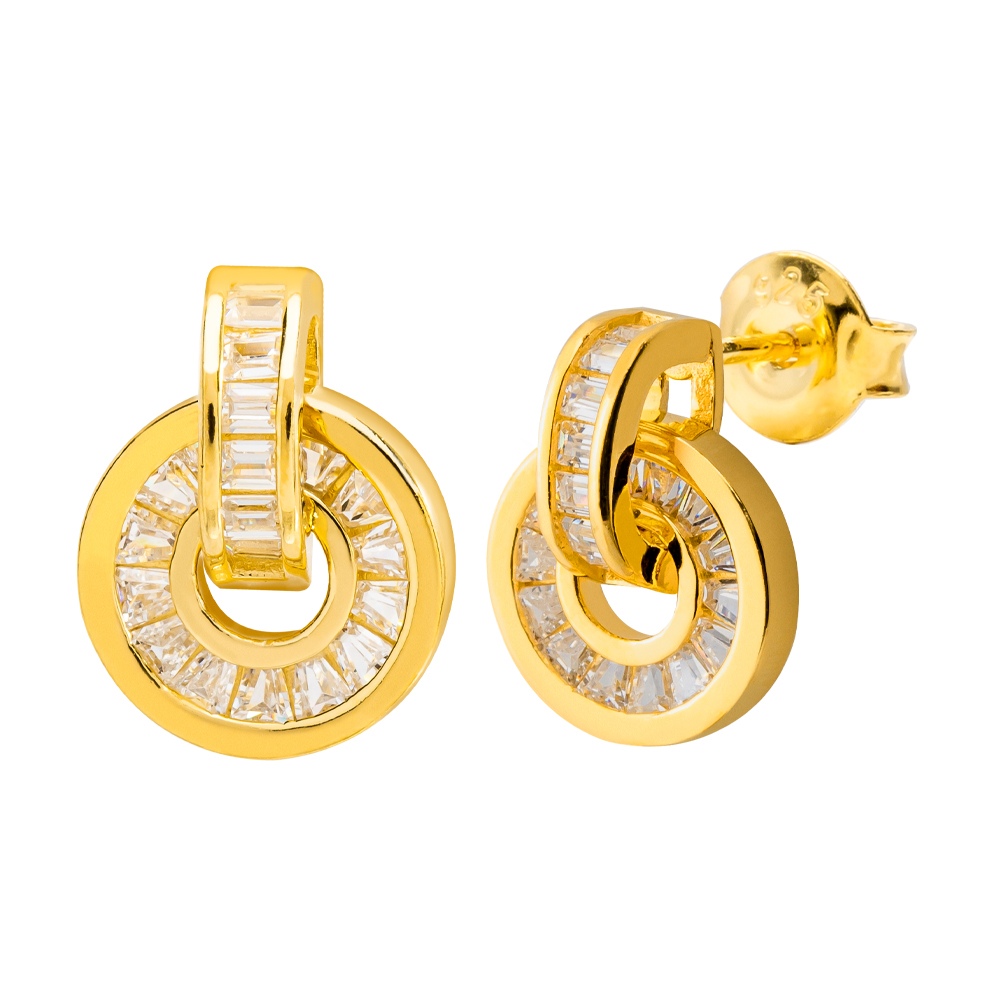 Juvenis Lobster Style Earrings, a symbol of truth, elegance, and guidance. These delicate earrings are dynamic and eye-catching accessories to adorn your ears with beautiful ornaments. The gems in these fabulous earrings are attached with Zircon gems to make their reflections as shiny as the moonlight chains. Juvenis Lobster Style Earrings are gold-plated over silver with a spring-ring buckle.