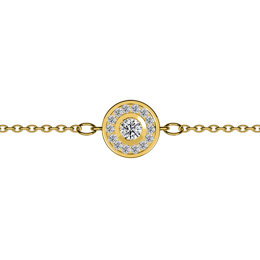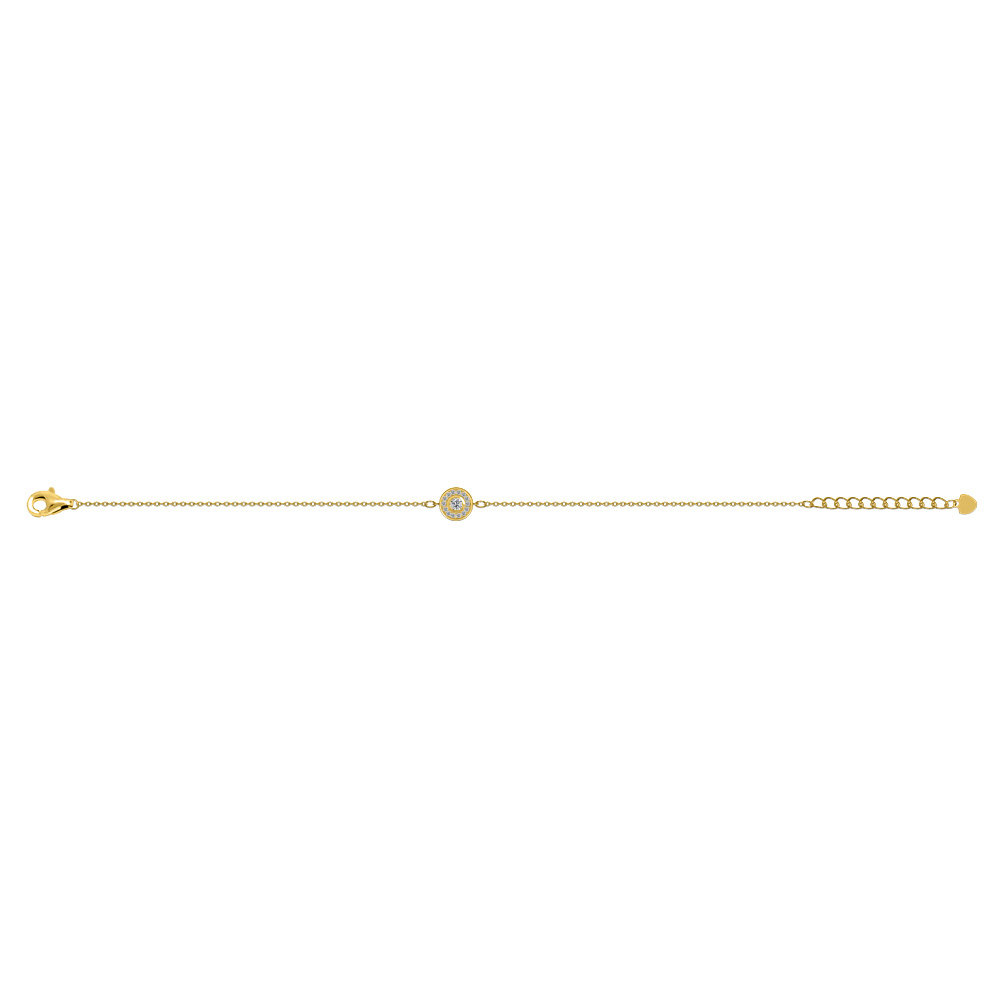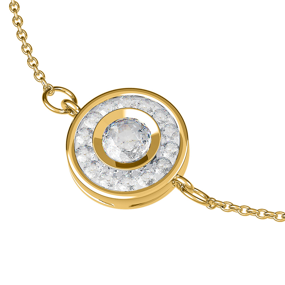 One of the most exquisite designing from Juvenis, this Luminous Gold Bracelet is a definition of classiness. A great refinement bracelet with gold-plated over silver color. The shape is two concentric circles surrounded by Zircon gems to give this bracelet the luxurious look when you put it on your wrist.