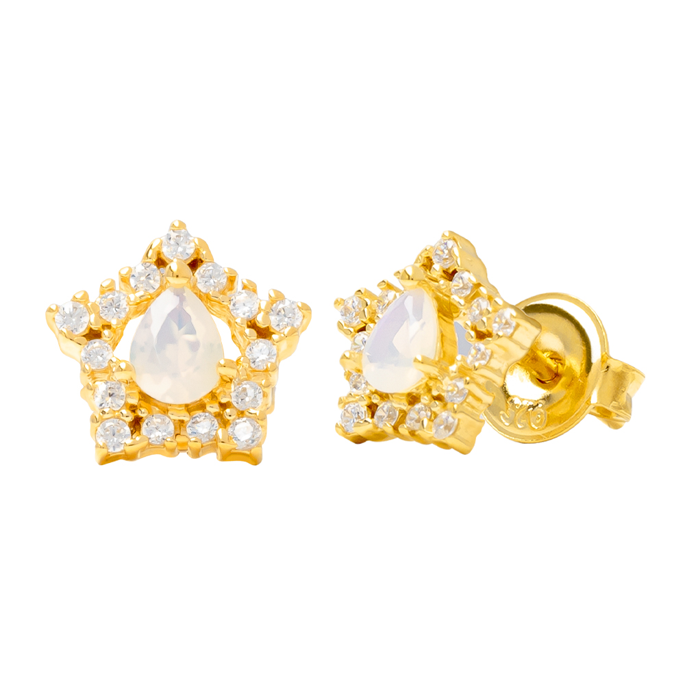 Juvenis Star Earrings, a symbol of truth, elegance, and guidance. These delicate earrings are dynamic and eye-catching accessories to adorn your ears with beautiful ornaments. The stars in these fabulous earrings are attached with Zircon gems to make their reflections as shiny as the moonlight chains. Juvenis Bow-type Earrings are gold-plated over silver with a spring-ring buckle.