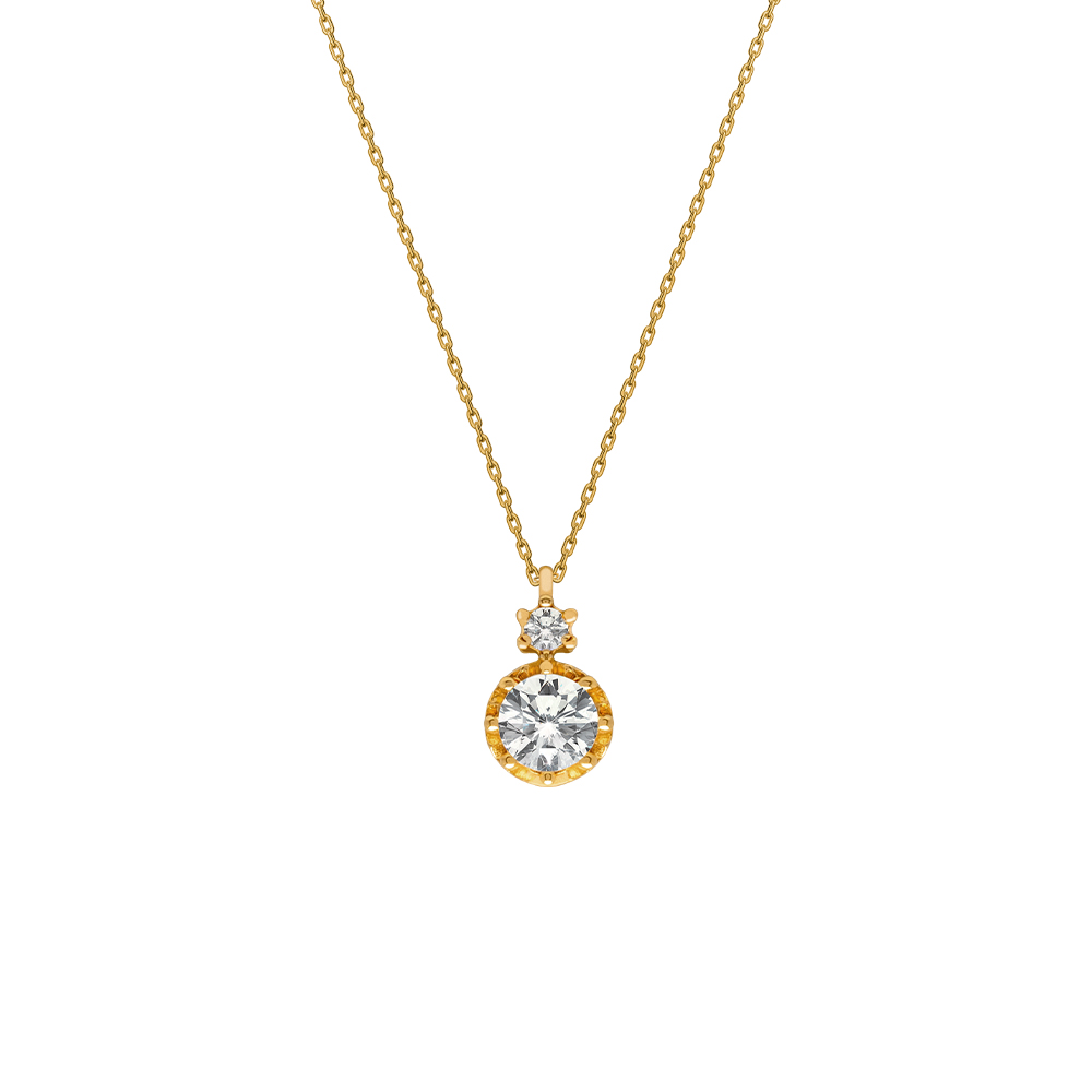 Fan of attractive jewelry items? Take a look at this unique item from Juvenis that contains a clutch holding a piece of Zircon gem attractively. This clutch is also attached to a hanging ornament that has a huge piece of silver gem that can glow in any eye. The chain it has is platted with silver and gold colors according to the style of your personality.